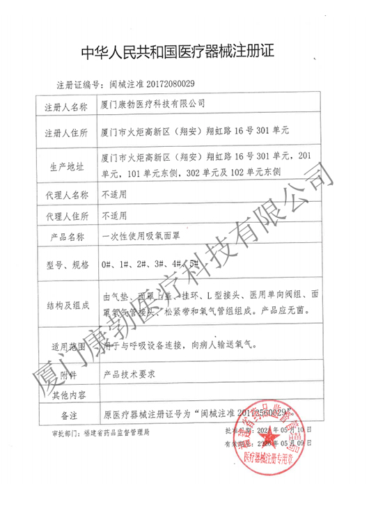 一次性使用吸氧面罩注冊(cè)證