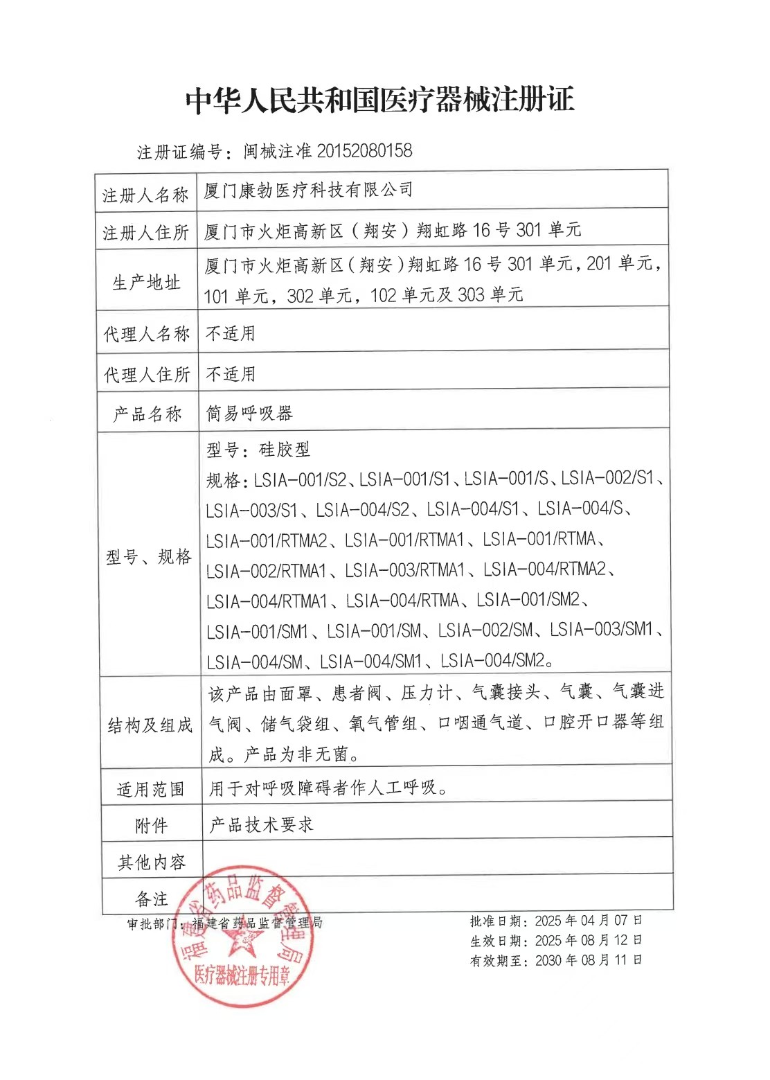 簡(jiǎn)易呼吸器注冊(cè)證