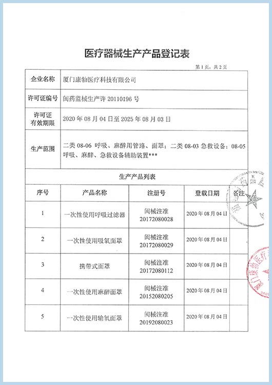 CPR mask Registration certificate by CFDA