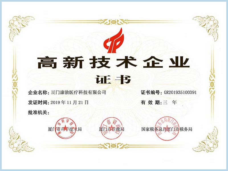 High-tech Enterprise certificate by Xiamen Science and Technology Bureau